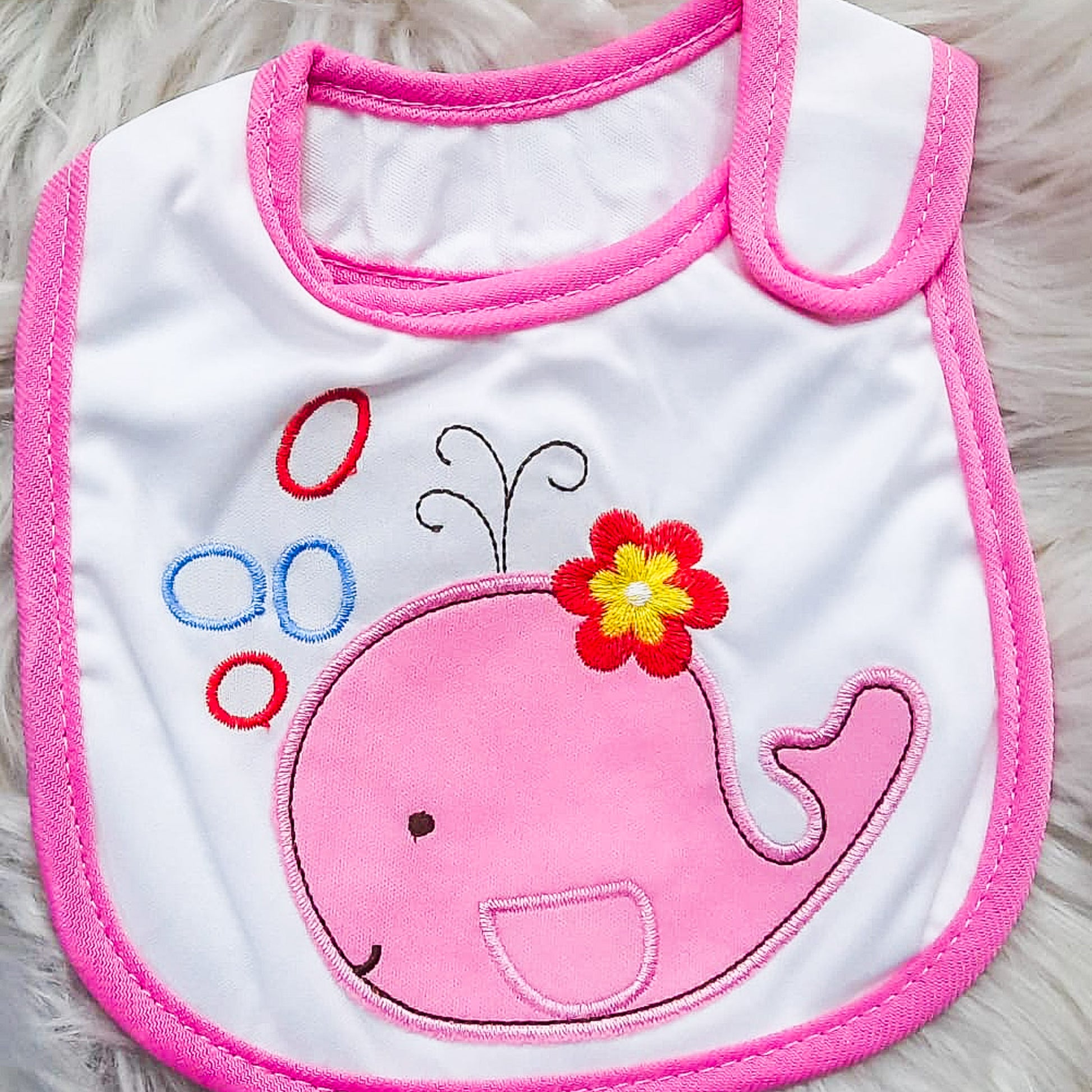 Baberos de algodón absorbente. Contienen 3 capas de tela: La primera capa permite que tu bebé luzca un hermoso diseño con una tela de algodón suave, la capa intermedia es impermeable que lo protege de la humedad y la tercera capa usa una suave tela de algodón que mantendrá muy séquito a tu bebé.