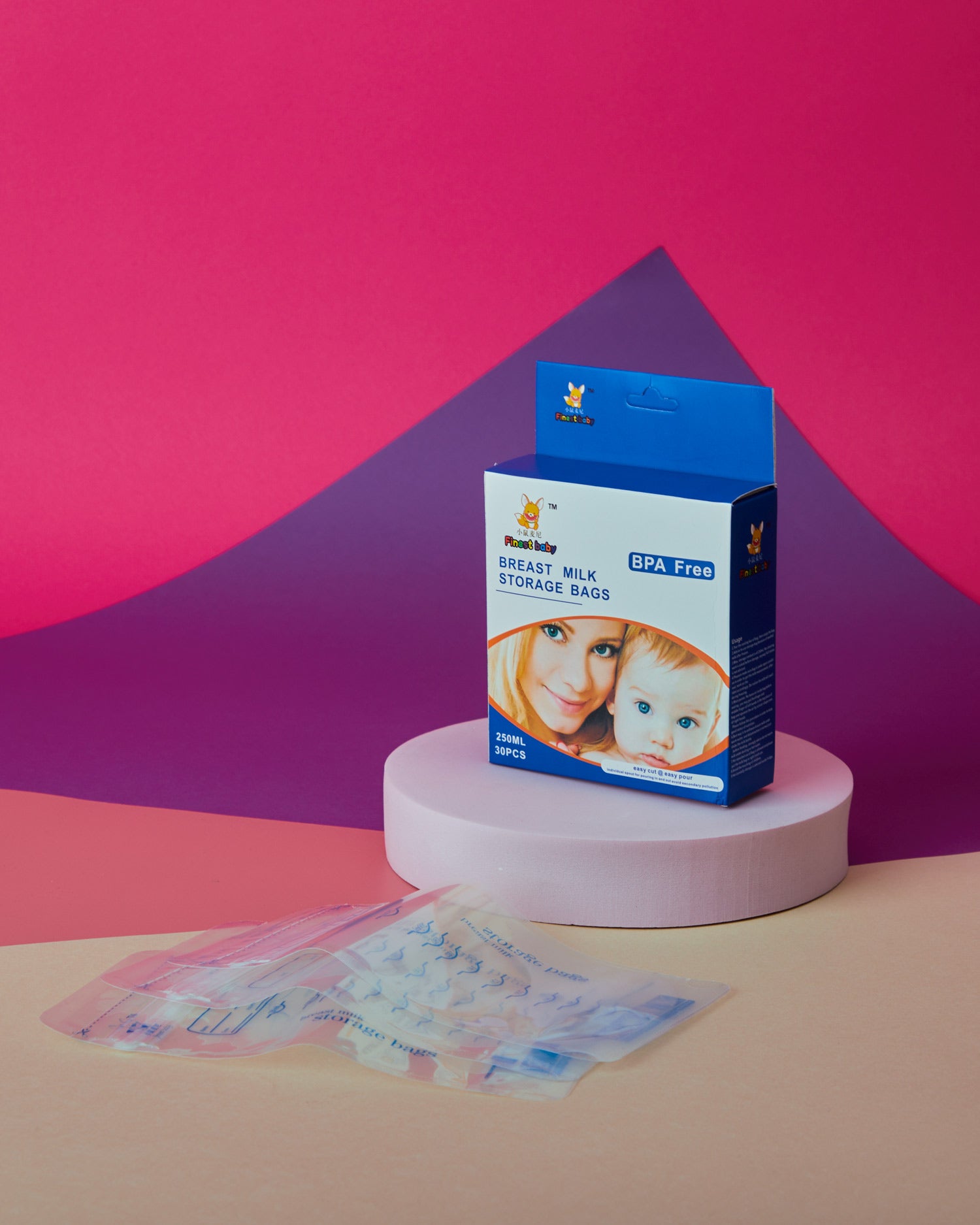 Bolsa para almacenar leche materna con capacidad de 250 ml de almacenamiento.