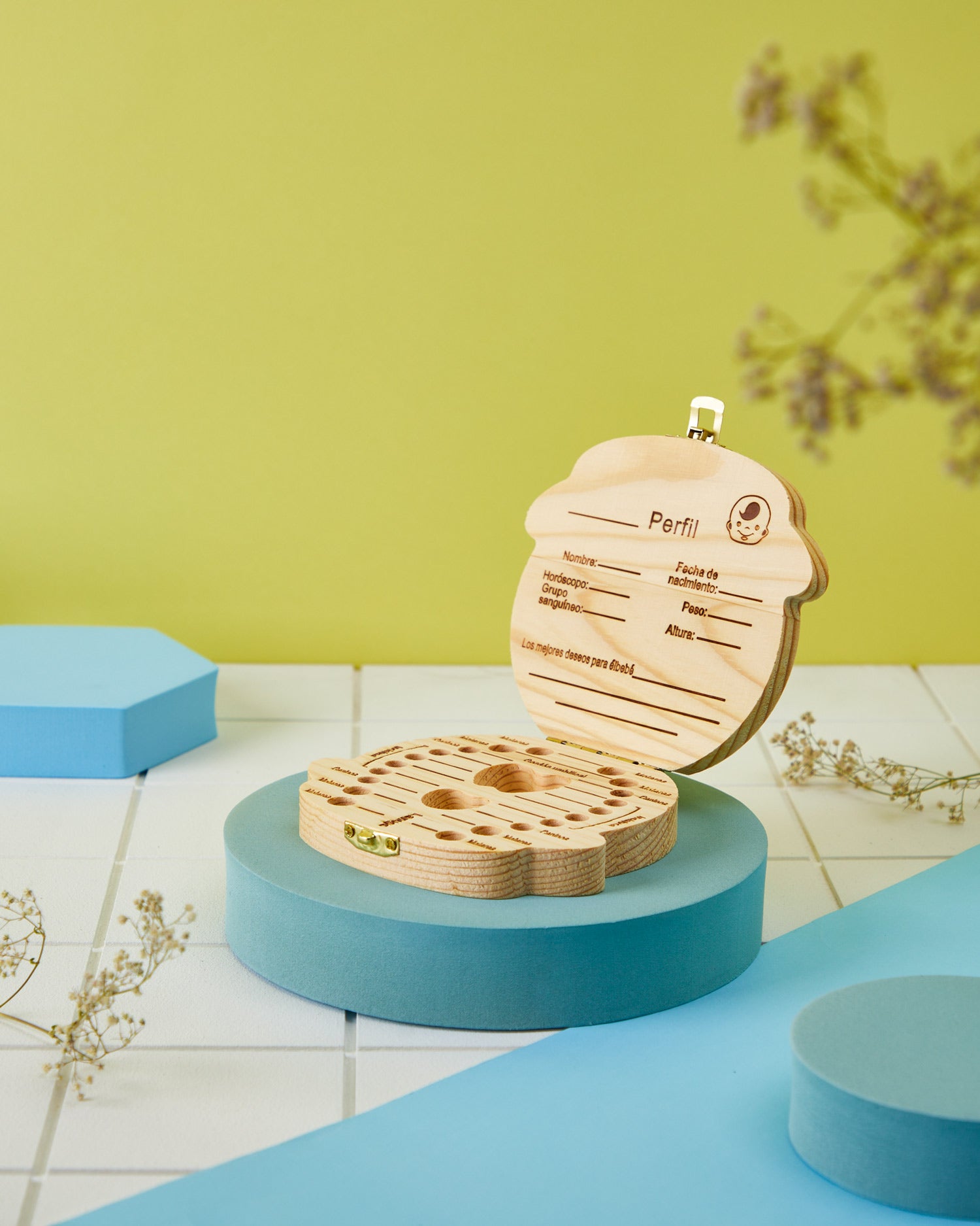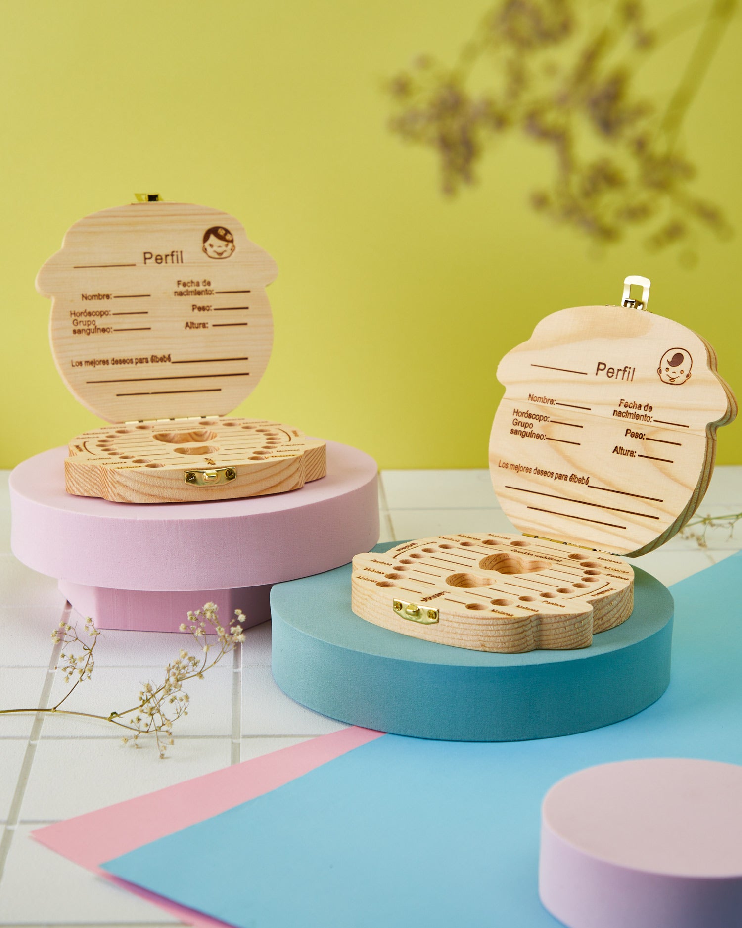 Hermosa cajita de recuerdos de madera para los primeros dientecitos de tu bebé.