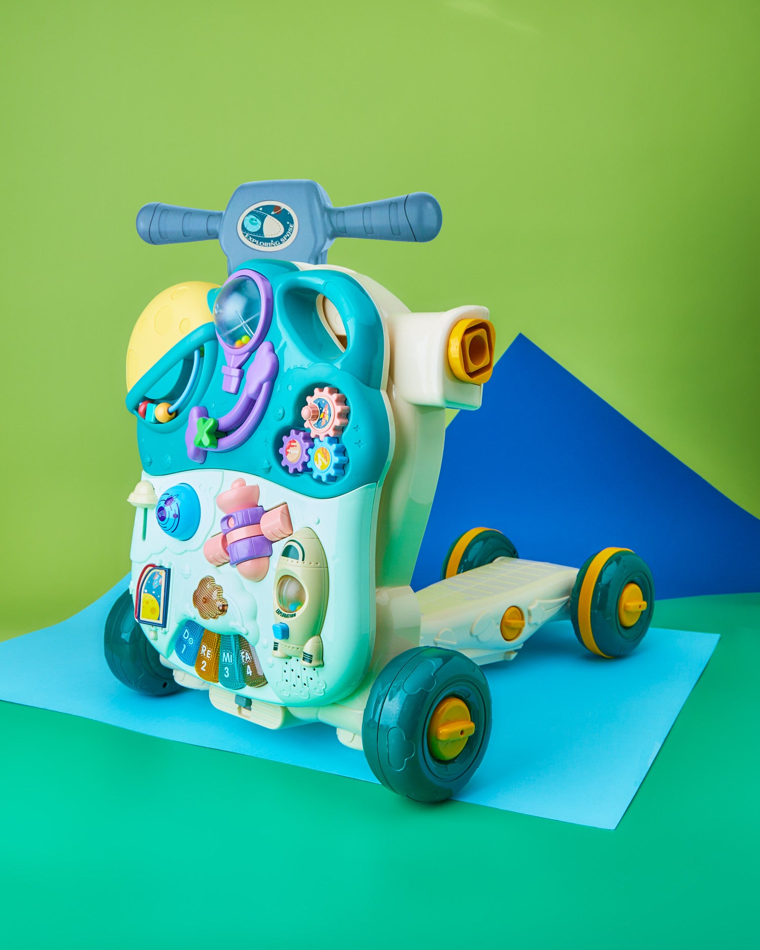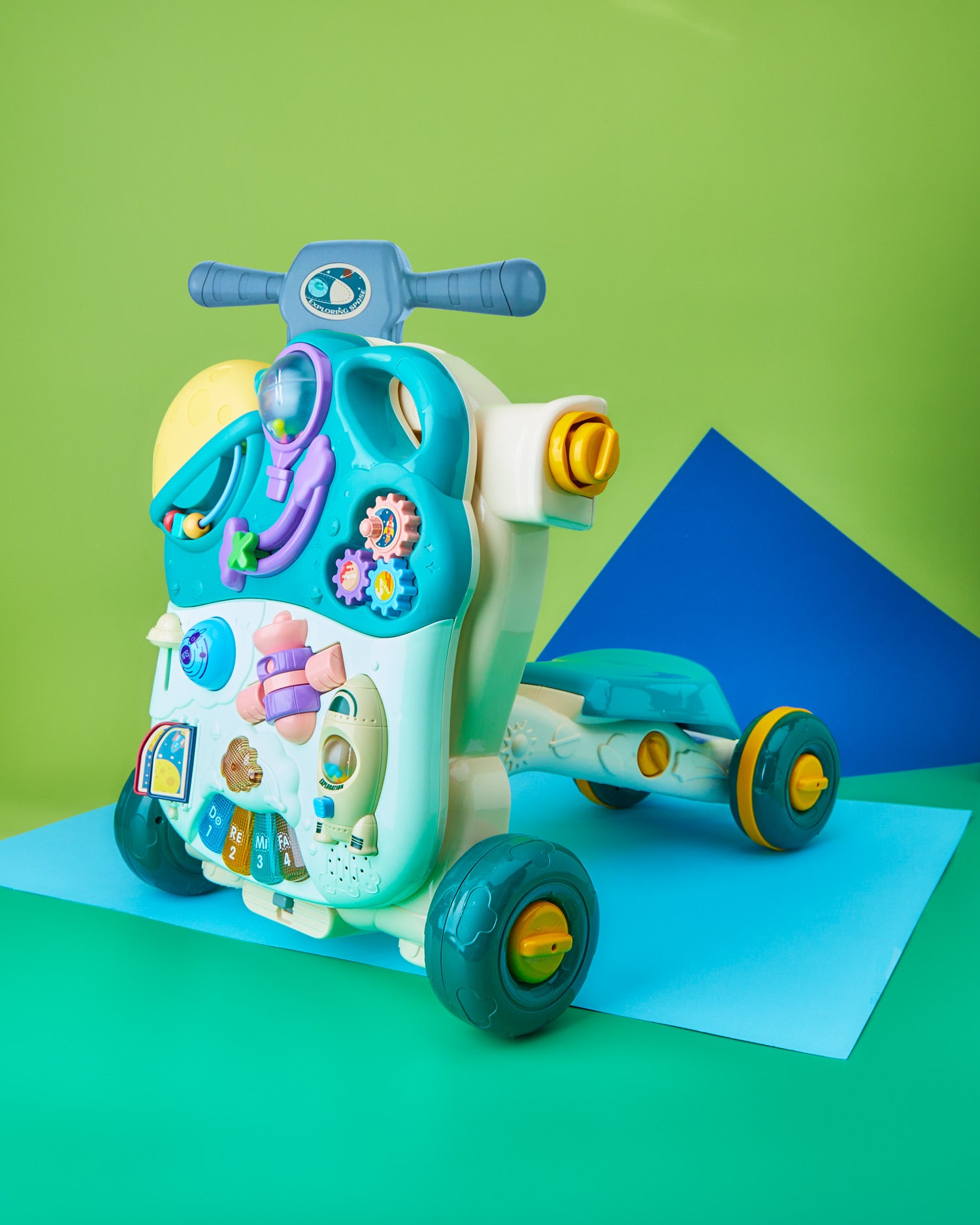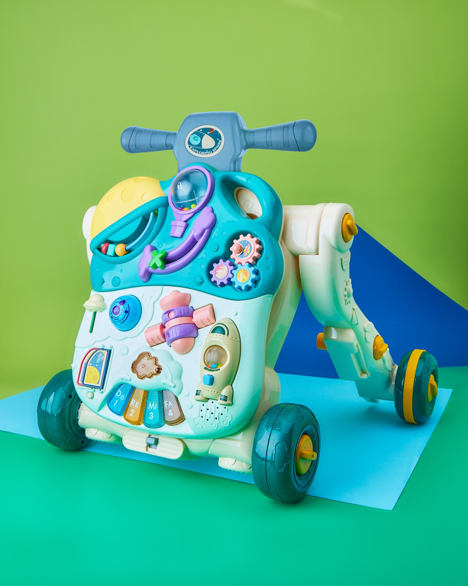 El andador se convierte fácilmente en una mesa de actividades repleta de funciones divertidas y únicas.