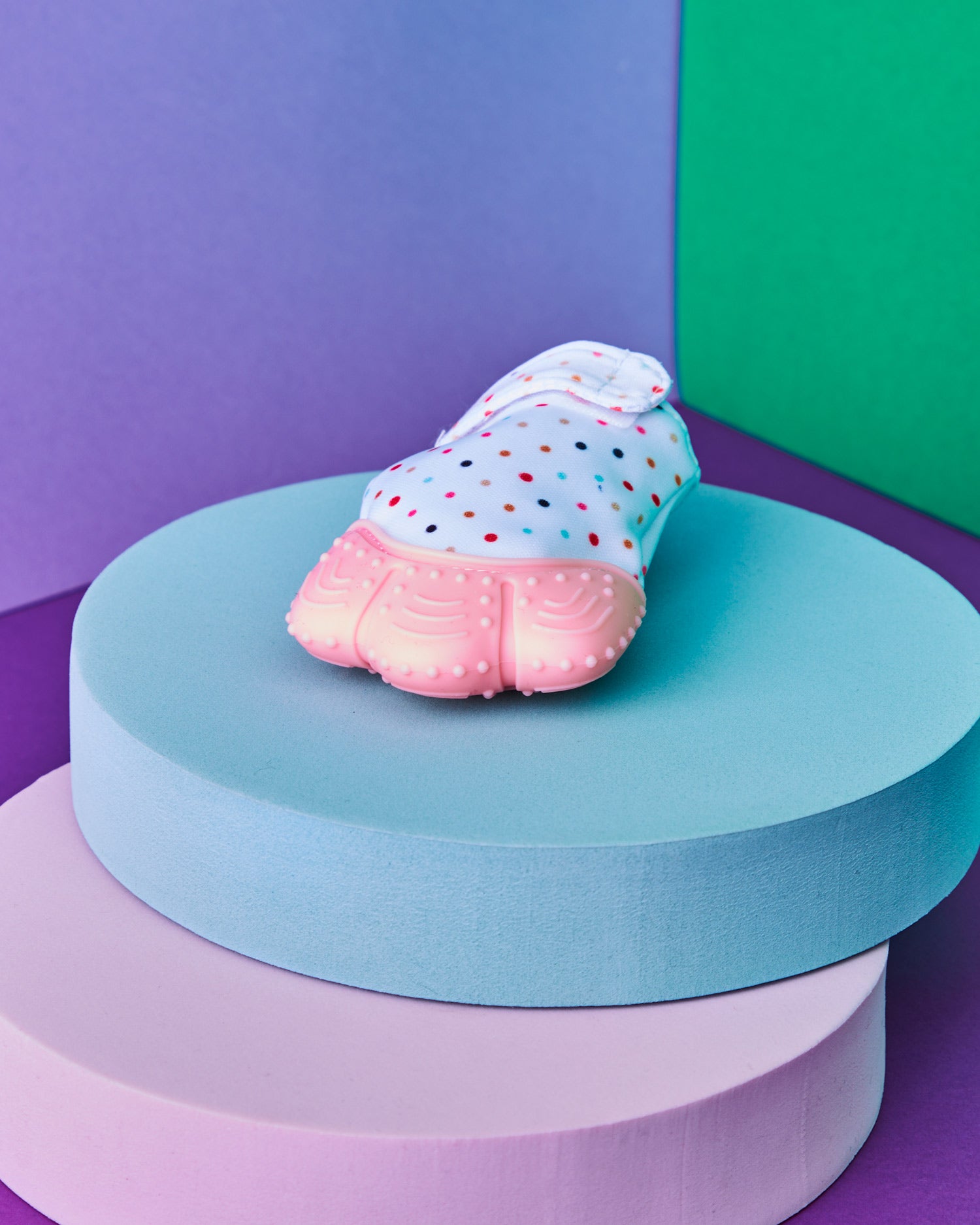 Este está diseñado con silicona de grado alimenticio , libre de BPA de gran flexibilidad aliviando al bebé el malestar en las encías con la aparición de los dientes.