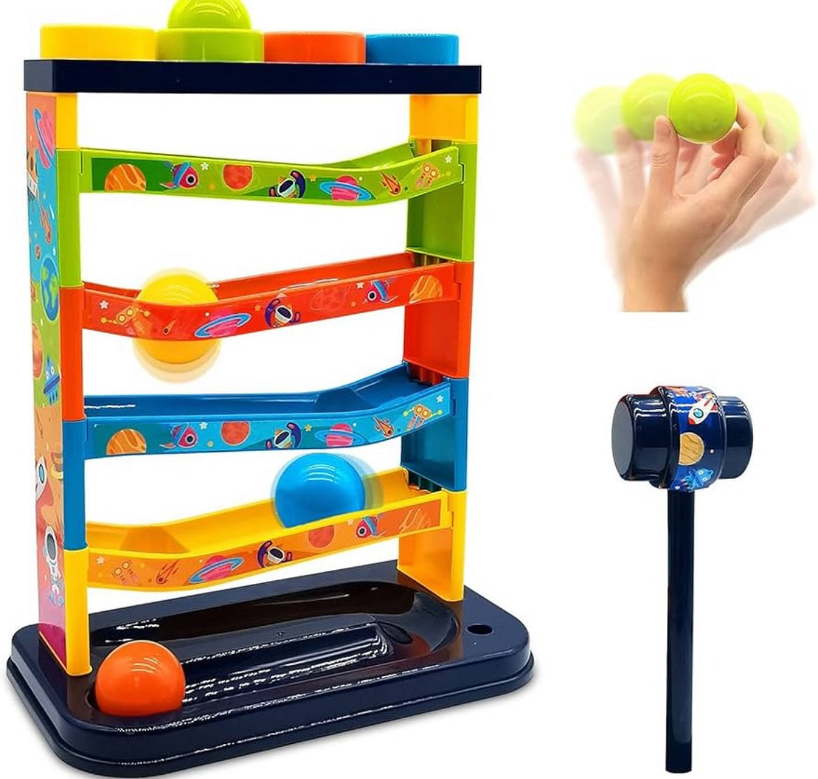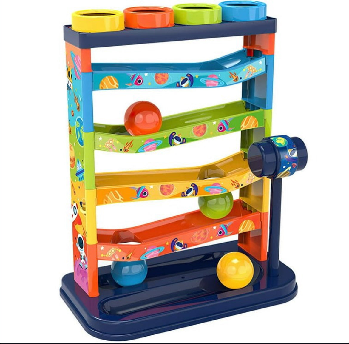 cinco capas de pistas, cuatro bolas de colores, golpeando la bola, la bola pequeña se deslizará por la pista, atrayendo la atención del bebé adecuada para su entretencion.