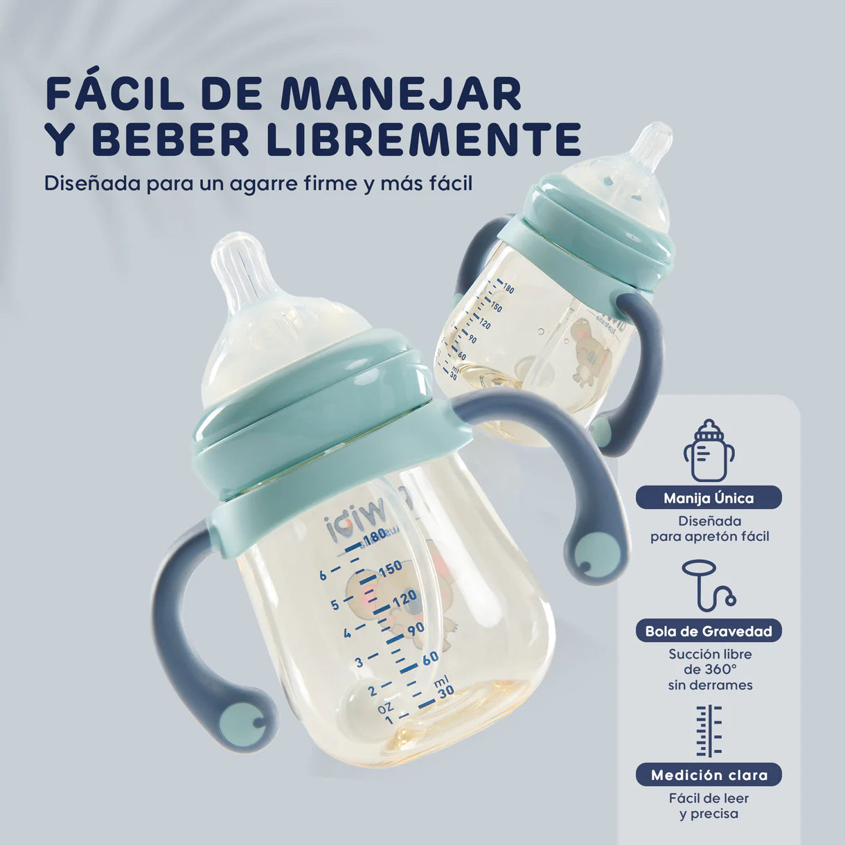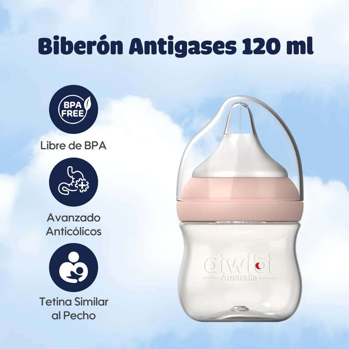 Los biberones Aiwibi para bebés recién nacidos utilizan materiales seguros y confiables para biberones. Nuestro diseño de botella de cuello ancho facilita la limpieza y no produce sustancias nocivas. El diseño de la tetina de silicona suave similar a un seno está cerca de la piel y es curvo para brindar comodidad durante la alimentación y apoyo durante la transición de la lactancia materna a la alimentación con biberón. El aire se intercambia a través de un respiradero en la tapa de la tetina del biberón para equilibrar la presión y reducir eficazmente los síntomas de flatulencia, hipo y vómitos de su bebé.