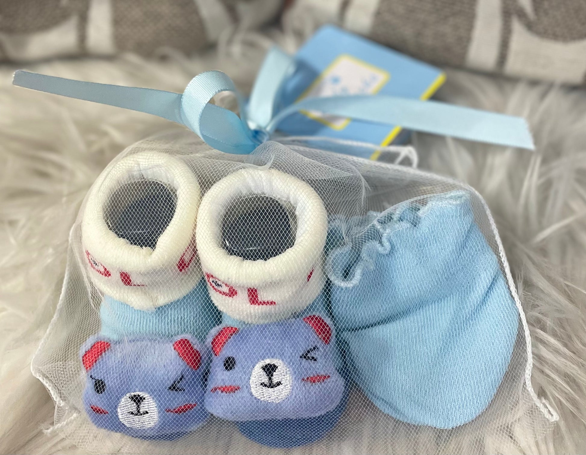 Calcetin y Mitones ideal para regalo para un bebé recien nacido.