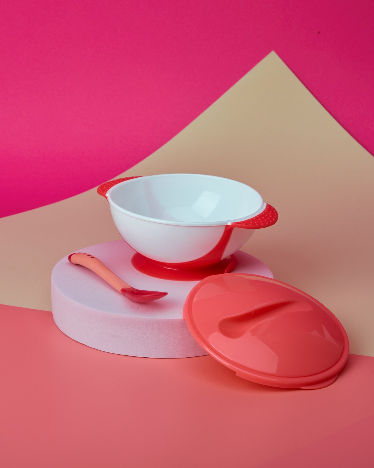 Se pega a las superficies de modo que evita que el bebé que esta aprendiendo a controlar su fuerza tire la comida, viene con su tapa y cuchara, facilidad para transportar alimentos.